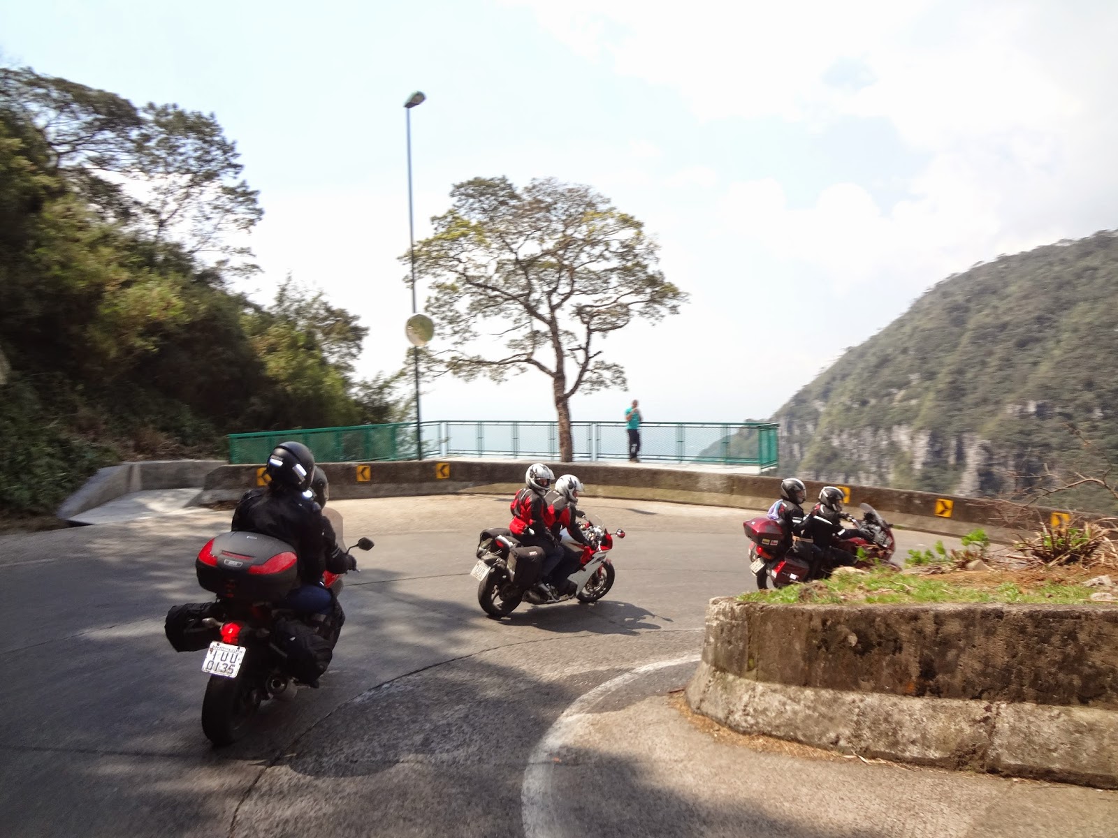 Chegando em Caxias do Sul encontramos os amigos Magno e Lia, da cidade de Osório, em uma BMW 1100 Touring, o Cavion e a Janice, em uma BMW 1200 GS e o D’Ávila, também em uma BMW 1200 GS. Seguimos até a BR 116. Até aqui foram 133 Km. Passamos pelo município de São Marcos onde paramos no paradouro Sinuelo (fica à nossa direita, na estrada) para um café, já com 166 Km rodados. Aproveitamos para abastecermos as motos, em posto de combustíveis imediatamente à frente, a nossa esquerda da estrada. Seguimos viagem, pela BR 116, passando pelo município de Vacaria, até chegarmos à BR 282, já em Santa Catarina. A BR 116 até aqui é boa, de duas vias e pista simples, com muitas curvas e um visual surpreendente da região chamada de Campos de Cima da Serra, no Rio Grande do Sul.