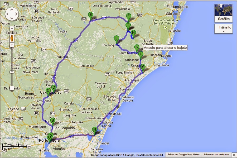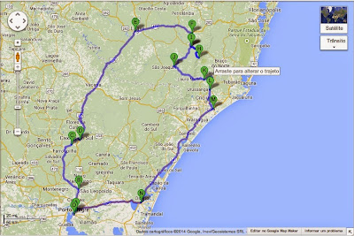 O ponto de encontro foi, como sempre fizemos, o posto de gasolina da rua Edu Chaves. Saímos de Porto Alegre às 9:45 h, em duas motos com garupas, em direção à cidade de Caxias do Sul, onde encontramos mais amigos do grupo NA ESTRADA 100, com o objetivo de chegarmos à Serra Catarinense. Eu e Renata, na Honda NC 700 X e o Gaston e a Adriana na Honda CBR 600. Fomos pela BR 116 até a RS 240 por, aproximadamente, 31 Km. Seguimos pelas RS 240 e RS 122 até Caxias do Sul.