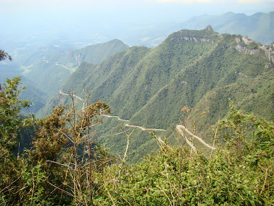 Saímos dali e retornamos ao centro de Urubici, de onde entramos na SC 430 (SC 110), subindo a serra. A 6 Km da cidade paramos em um mirante, de onde se pode contemplar a cidade de Urubici e os campos ao seu redor. Uma vista também muito bonita. Continuamos pela SC 430 (SC 110), até chegarmos à SC 438 (SC 390), onde entramos à direita em direção a Bom Jardim da Serra. Este entroncamento fica cerca de 50 Km do centro de Urubici. Após mais 40 Km pela SC 438 (SC 390), chegamos ao mirante da Serra do Rio do Rastro, em Lauro Müller.