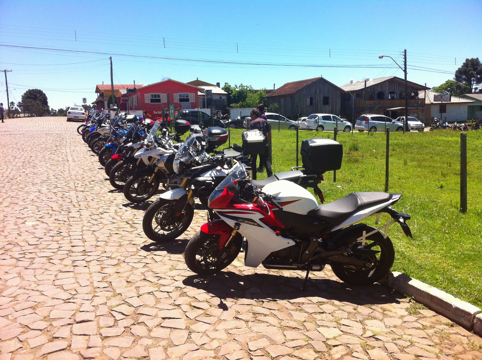 No café Tainhas encontramos o restante do grupo que se juntou a nós: Kuze e Dagui (Super Tenéré 1200), Adão e Maria (Triumph Tiger 800), Cavion e Janice (BMW 1200 GS), Lobinho (BMW 1200 GS) e Lobinha (Triumph Tiger 800), Paulo (V Strom 650 DL), D’Ávila (BMW 1200 GS) e Sílvia (BMW 800 GS) e a Fátima Rossi (Yamaha XT 660). Foi formado um comboio de 15 motos, além da camionete L 200 do “Super” Mário, seguindo na direção de Cambará do Sul, por cerca de mais 32 Km, ainda pela RS 020. A estrada continua com as mesmas características de pavimentação, ou seja, muito boa. Apos cerca de 2 Km do Café Tainhas, a RS 020 chega à RS 453 onde se pega à direita por mais cerca de 1 Km até um trevo onde se retoma a RS 020, à esquerda, em direção à Cambará do Sul.
