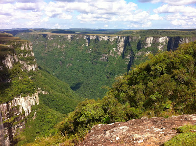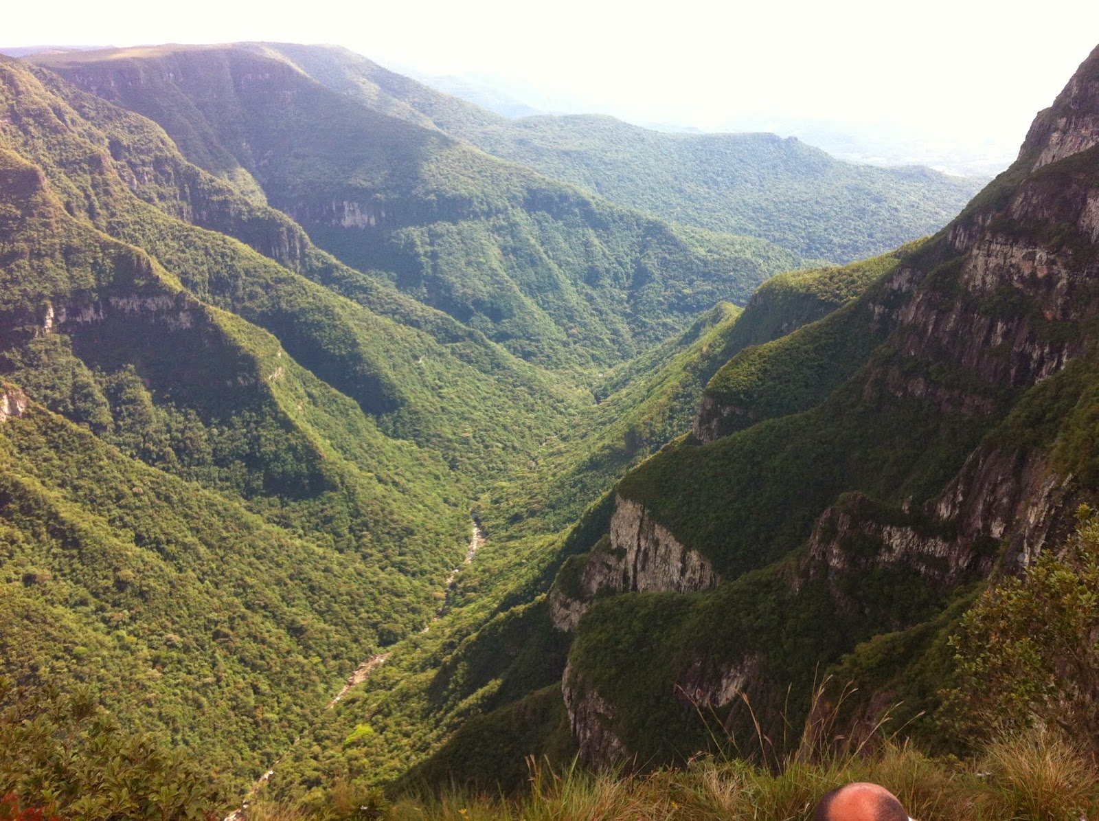 O Itaimbezinho é um dos maiores cânions do Brasil, com uma extensão de 5.800 m, largura entre 200 e 600 m e profundidade de 720 m. Existem três trilhas que se pode percorrer, porém é necessário chegar cedo ao parque, pois o horário máximo para iniciar o percurso é às 15 horas. O horário para ingresso no parque é das 8 às 17 horas e valor é de R$ 7,00 por pessoa e R$ 3,00 o estacionamento para motos. Apesar de termos chegado tarde, ainda conseguimos fazer uma pequena trilha que proporciona uma vista geral do cânion. Passamos por um pequeno rio de águas muito limpas que convida a um banho. O parque tem um local de informações, com jovens que ficam no atendimento ao turista que me passaram a impressão de serem um pouco tímidos para a função que exercem, o que compromete um pouco. Como nosso contato com eles foi breve, não posso afirmar que seja sempre assim. Ali nos despedimos do Lobinho e Lobinha, do Paulo e da Fátima, que retornaram no mesmo dia para sua cidade, Caxias do Sul.