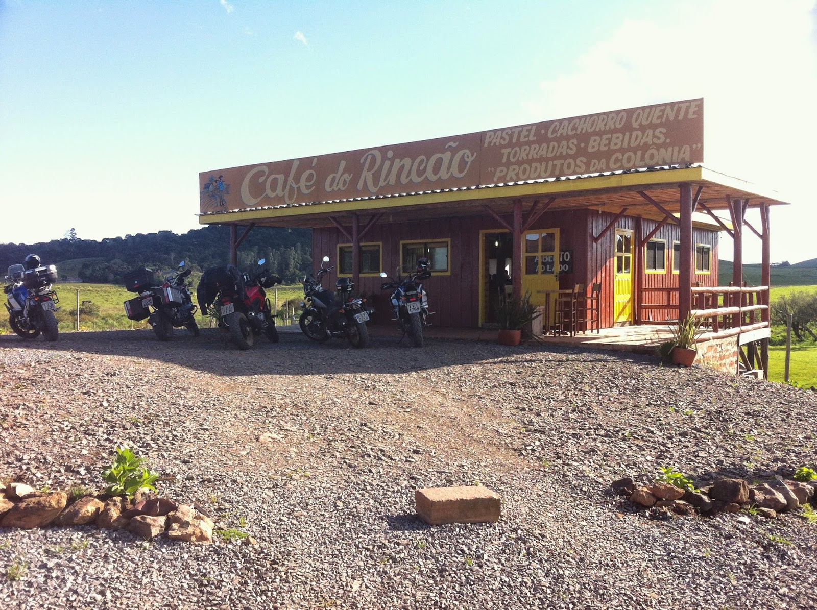 Voltando do Itaimbezinho, paramos em uma lanchonete à beira da estrada, chamada Café do Rincão, que oferece pastéis, cachorro quente e outros lanches, além de produtos coloniais e, é claro, café. O atendimento é feito pelo proprietário e uma cozinheira. O cara é extremamente simpático, entrando no clima de brincadeira que o grupo institui onde chega.
