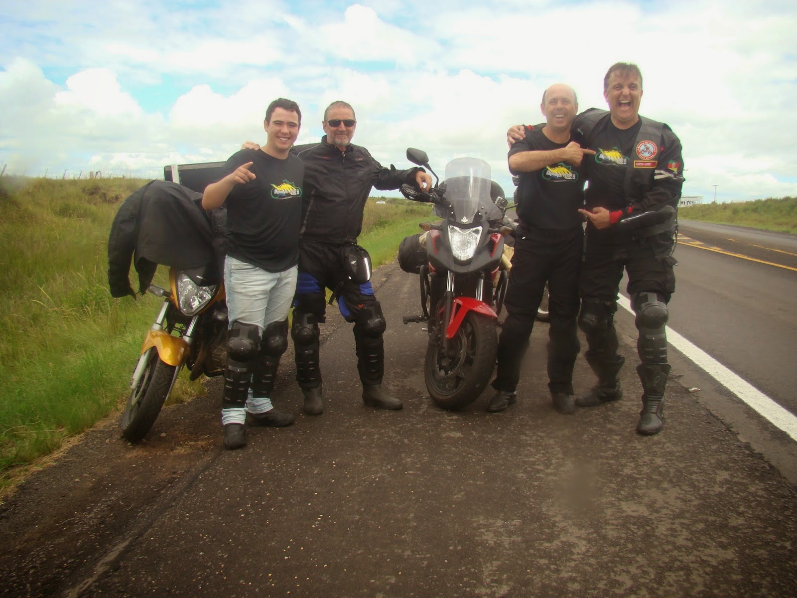 Conheci o Jorge quando tínhamos 9 anos de idade, em Pinheiro Machado. Quando crianças, brincávamos com nossas bicicletas como se estivéssemos sobre motos em aventuras e viagens imaginárias que apenas a mente infantil permite sonhar. Por coincidência, ou não, minha bicicleta era vermelha, como minha moto. Hoje, após 40 anos, novamente estamos brincando juntos. O Jorge me presenteou, há 13 anos, me convidando a ser padrinho do Renan. Hoje é um menino com maturidade acima de sua idade, tendo passado por toda a vigem com um comportamento digno de um motociclista. Aguentou tudo, até mesmo as bricadeiras com ele, com bom humor e um sorriso no rosto e raríssimos momentos de atitudes de um menino de 13 anos. Já o Álvaro, nos conhecemos há 14 anos em Búzios, no Rio de Janeiro durante uma viagem de férias. Desde lá ficamos amigos e, na primeira vinda dele a Porto Alegre, em 2003, apesar de eu tê-lo levado a fazer seu primeiro almoço na capital gaúcha em uma lanchonete MacDonald’s, nossos laços de amizade ficaram cada vez maiores. Hoje é um irmão.