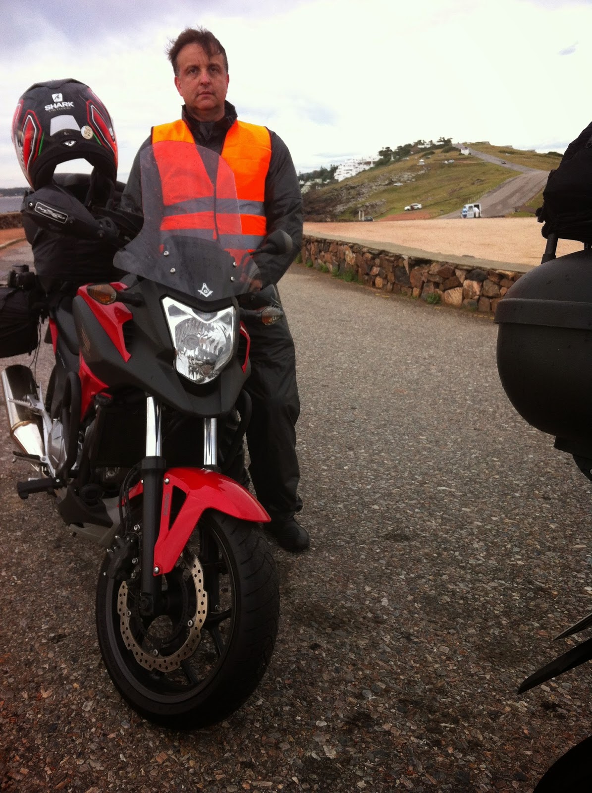 Após o almoço andamos um pouco mais pela cidade e, como se armava um possível temporal, resolvemos antecipar nossa saída. Retornamos à pousada, trocamos de roupa e equipamos as motos. Saímos de Punta Del Este em torno das 17:30 horas, em direção à Punta Ballena sob muita chuva.