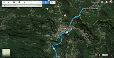 Chegando no trevo de acesso à cidade, que está localizada à esquerda da BR 116 no sentido de quem sobe a serra gaúcha, logo em seguida se encontra o acesso à RS 873, este localizado à direita da subida da rodovia. Percorre-se cerca de 1,5 Km, onde já se encontra sinalização indicando o Café Colonial Walachay. Neste ponto, entramos em uma estrada sem pavimentação, por onde se percorre cerca de 600 m até chegarmos ao Walachay. Chegamos lá em torno das 15:30 horas.