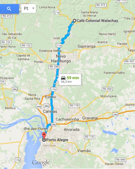 Após diversos dias de muita chuva no Rio Grande do Sul o sábado, dia 18 de Julho de 2015, amanheceu com sol. Porém, a previsão do tempo para o dia seguinte era de mais chuva. Nos restava um passeio curto por perto de Porto Alegre. Por indicação do amigo Marcelo Veiga, resolvemos conhecer um Café Colonial chamado Café Walachay, no interior do município de Morro Reuter, na serra gaúcha.