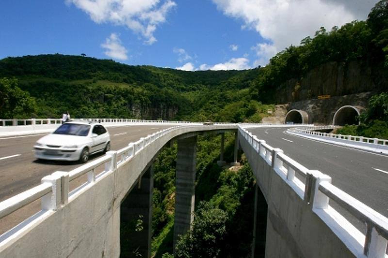 Seguindo pela Rota do Sol, alguns quilômetros à frente nos deparamos com curvas incríveis e com dois túneis, que fazem a adrenalina subir. Ainda tem o viaduto da Cascata, na localidade de Aratinga, no município de São Francisco de Paula. É uma construção em curva sobre o cânion com visual incrível. Logo em seguida paramos em um mirante à direita da via. Até aqui estávamos com 175 Km rodados. Ali também tem um restaurante e lanchonete, porém não chegamos a conhecer. Lá de cima se pode contemplar a belíssima paisagem que a natureza nos proporciona.