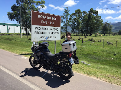 Sábado, dia 14 de novembro de 2015. Eu e meu filho Fabrício (Triumph Tiger 800 XCX) e o amigoss Gaston e a Adriana (Honda CBR 600) saímos de Porto Alegre às 9:36 horas pela BR 290 (Free Way) em direção ao norte do estado do Rio Grande do Sul. A rodovia é duplicada, com boa pavimentação e duas praças de pedágios, sendo a primeira no município de Gravataí (R$ 3,15), no Km 78, a cerca de 24 Km de Porto Alegre e a segunda, no Km 19, no município de Santo Antônio da Patrulha (R$ 6,30). Seguindo pela BR 290, acessamos a BR 101, no município de Osório, com 94 Km rodados, onde paramos para um café no restaurante Maquiné, às 10:30 h, com 102 Km rodados. A velocidade máxima permitida na BR 290 é de 110 Km/h. Após entrar na BR 101, na cidade de Osório, a velocidade passa para 80 Km/h. Logo nos primeiros quilômetros existem controladores de velocidade que, para o piloto um pouco desavisado, a multa é certa.