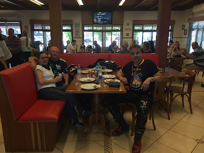 O lugar é muito agradável e com uma comida bastante saborosa. Ali é um ponto de parada para quem cruza as estradas da região, onde também muitos motociclistas fazem seu ponto de referência. O preço é bastante razoável. O almoço com refrigerante sai por cerca de R$ 31,00 por pessoa. Na saída tive a felicidade de encontrar alguns irmãos motociclistas do Moto Grupo Bodes do Asfalto de Caxias do Sul, Santa Maria e Rio Grande que passeavam juntos pela região.