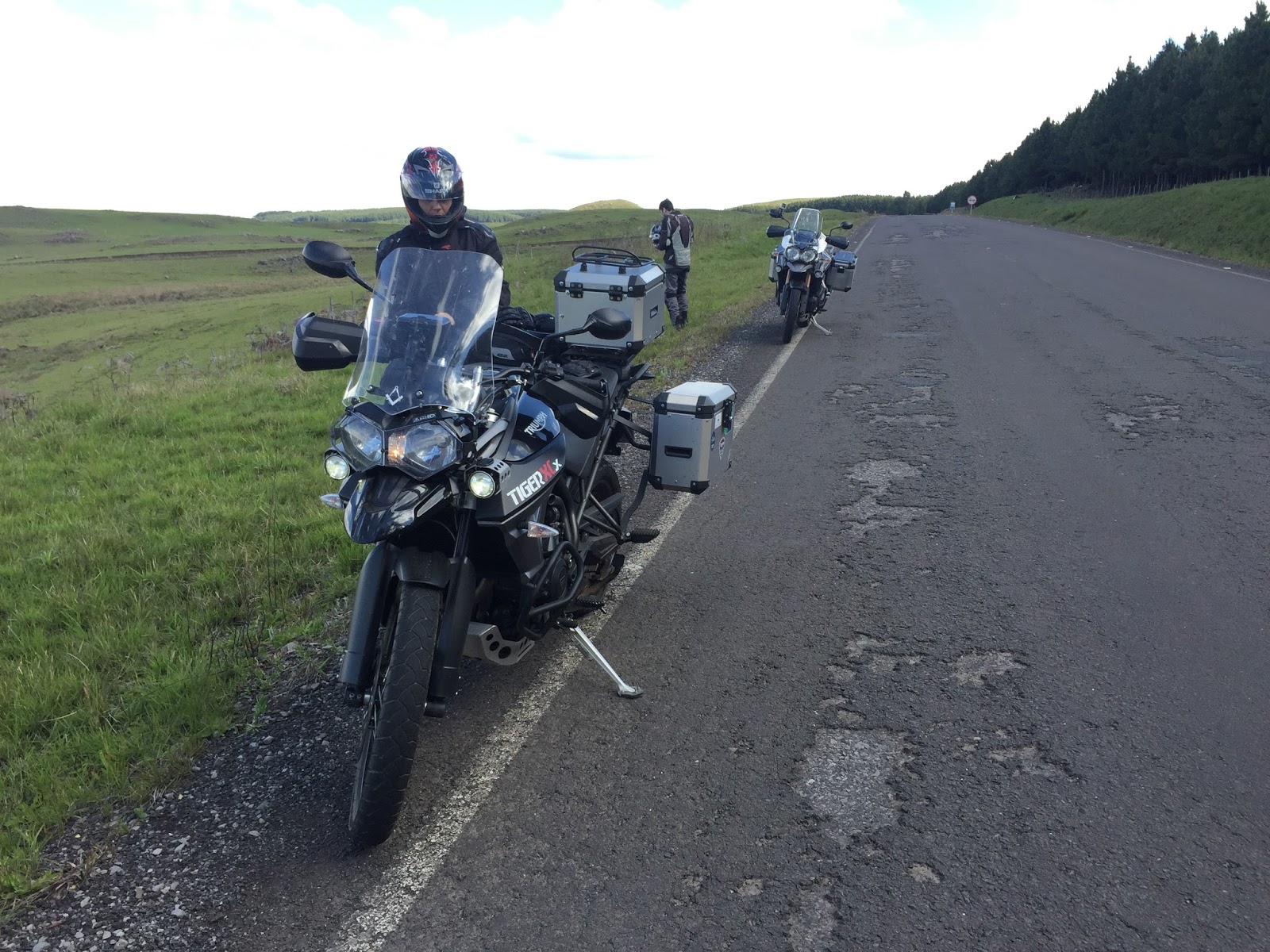 Saída de Porto Alegre em torno das 10:30 h da manhã. O destino é a região dos Campos de Cima da Serra, no Rio Grande do Sul. A programação é dormir na cidade de São José dos Ausentes e, no dia seguinte, descer a Serra da Rocinha. As motos: Triumph Tiger 800 XCX (eu e a Renata) e Triumph Tiger Explorer 1200 XC (Humberto).