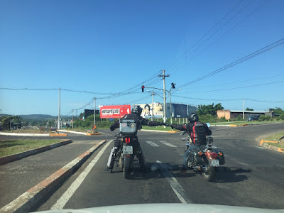 Sábado, dia 21 de janeiro de 2017.  Eu (Tiger 800 XCX) e meu filho André (Yamaha Virago 535) saímos de Porto Alegre em torno das 10 horas da manhã com destino à cidade de Três Coroas, na serra gaúcha. Nosso caminho iniciou na saída de Porto Alegre, pela Avenida da Legalidade e da Democracia (antiga avenida Castelo Branco), entrando na BR 290 (Free Way) no sentido Norte, seguindo por 2 Km até acessarmos a BR 448 (Rodovia do Parque) e, nesta, por mais 22 Km até a BR 116 no município de Sapucaia do Sul. Pela BR 116 andamos por 19 Km até a ERS 239, no município de Novo Hamburgo. As rodovias BR 290, BR 448 e ERS 239 são estradas com pista dupla e de excelente pavimentação. Na BR 448 se deve ter cuidado com algumas cabeçeiras de pontes devido ao desnível da via. Na ERS 239 existem diversos controladores de velocidade, além de uma intensa fiscalização por parte da Polícia Rodoviária Estadual. Nessa rodovia a velocidade máxima  é de 80 Km/h, porém com diversos trechos de reduções da velocidade, onde alguns são 60 Km/h e outros 50 Km/h, também fiscalizados constantemente.