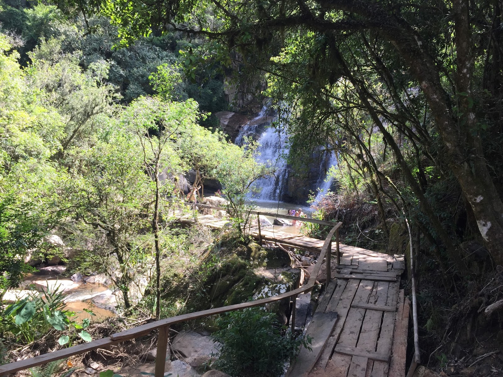 Após fazer o reconhecimento da cidade, continuei pela RS 711 em direção ao interior do município em busca das cascatas. A primeira opção seria a Cascata do Chicão. Existem algumas placas sinalizando o caminho mas, devido ao grande número de outras acessos secundários, encontrar o local se tornou um pouco confuso. Como não estava encontrando a cascata e sem ter certeza de que estava no caminho certo, resolvi entrar em uma propriedade rural para pedir informações. Tive a sorte de entrar na propriedade do Zé, um colono local que me informou que a cascata do Chicão estava fechada à visitação. Durante nossa conversa,  ofereceu uma cascata existente em sua propriedade. Aceitei o convite e fui conhecer o lugar. A única recomendação feita pelo Zé foi para que mantivéssemos a porteira da propriedade fechada, para que seu gado não saísse para a estrada. O local é mantido por ele, sem qualquer custo para os visitantes e sem qualquer intenção econômica.