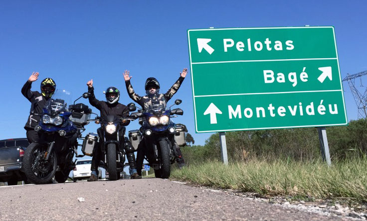 Saímos de Porto Alegre às 6 horas da manhã com destino à cidade de Bagé, na região da Campanha do Rio Grande do Sul. Seguimos pela BR 290, paralelo à BR 116, no sentido sul por cerca de 14 Km, quando a rodovia se desvia para oeste. Continuamos pela BR 290 por 123 Km até o município de Pantano Grande onde paramos para tomarmos café em um paradouro chamado Raabelândia. Aproveitamos para abastecermos as motos. Seguimos por mais 125 Km até o entroncamento com a BR 153, já no município de Cachoeira do Sul. Naquele ponto entramos na BR 153 em direção sul onde andamos por mais 114 Km até a BR 293. Ali encontramos o amigo Jorge Moreira (Honda CB 500), de Pinheiro Machado, que nos aguardava para continuar o passeio conosco. Seguindo pela BR 293 por mais 10 Km está a entrada da cidade de Bagé, onde chegamos às 11 horas. Estas rodovias são todas pavimentadas, porém com trechos que estão um pouco danificados, com alguns buracos.