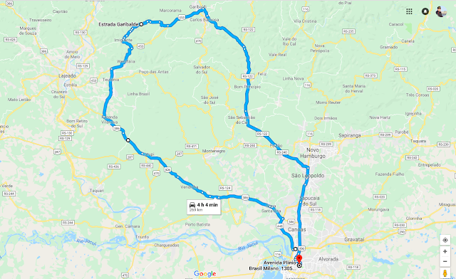 Continuamos pela RS 122 por mais 39 Km até uma praça de pedágio (isento para motos) onde inicia a ERS 240. Seguimos por mais 13 Km até a BR 116, na localidade de Scharlau e mais 30 Km até chegarmos em Porto Alegre, em torno das 21h20min, com 270 Km percorridos. Um passeio curto e com lugares muito interessantes, em meio à natureza e às belezas da região.