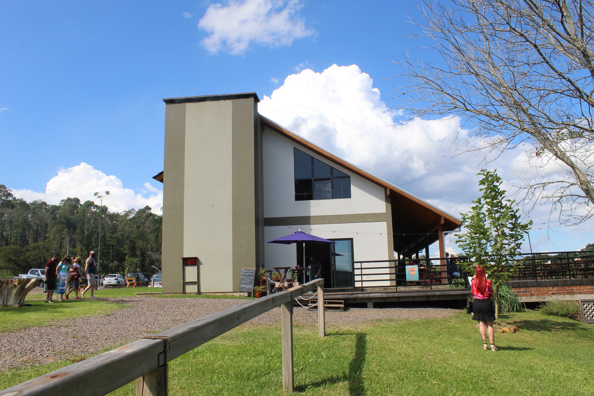 Chegando na cidade, logo avistamos um local que parecia ser um restaurante à direita da rodovia localizado em uma grande área aberta. Seguimos até a rua principal da cidade, poucos metros à frente, onde não encontramos qualquer outro local para comermos. Retornamos aquele que seria o único local onde encontraríamos refeição. Chegando descobrimos que se tratava de uma cervejaria chamada Qüera. Um local bastante amplo, com uma grande área verde onde é possível comer no chão do imenso gramado, tipo piquenique, com lagos e um visual fantástico. Também existe a possibilidade de escolher ficar em mesas sobre um grande deck ao ar livre. Inicialmente ficamos receosos devido ter um número considerável de pessoas ali. Após observarmos um pouco o local, assim como o comportamento das pessoas e da equipe da cervejaria, percebemos que seguiam as regras de segurança necessárias para o momento em que vivemos. No lugar não existe almoço, mas apenas lanches e petiscos. O lanche que escolhemos estava extremamente saboroso e com preço bastante justo. É claro que não foi possível experimentarmos as cervejas ali produzidas por razões óbvias. A cervejaria é um misto de cultura alemã e tradicionalismo gaúcho, o que cria um ambiente bastante peculiar. Fica localizada na rua 25 de Julho, número 500.