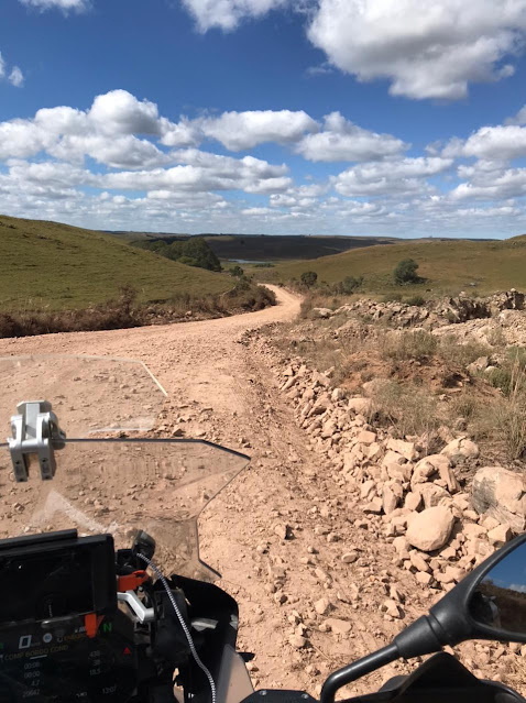 Após uma pausa em um posto de gasolina na entrada da cidade para descanso e resolvermos um pequeno contratempo pessoal não relacionado à viagem, quando também aproveitamos para reabastecermos as motos e calibrar o pneu da minha moto, partimos em direção à Ponte das Goiabeira. Foram mais 12 Km pelas BR 285 e RS 110 as quais percorrem juntas esse trecho. Neste ponto as duas rodovias se separam, quando a BR 285 segue em direção leste como uma rodovia asfaltada e a RS 110 segue em direção norte como uma estrada de terra chamada de Caminhos da Neve, ligando Bom Jesus, no Rio Grande do Sul, a São Joaquim, em Santa Catarina.