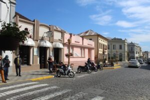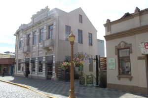 Descendo pela rua Júlio de Castilhos se chega ao Centro Histórico, cuja rua principal Buarque de Macedo traz um casario histórico do início do século XX, bastante preservado. A rua com calçamento em paralelepípedos e postes de luz da época mantém as características e o charme do início do século passado mesclados com veículos modernos e hábitos dos dias atuais. Grande parte destas construções traz fixado em sua faixada uma placa contando sua história. Saborear um café na cafeteria Luna Park localizada em uma destas construções antigas é uma experiência extremamente agradável.
