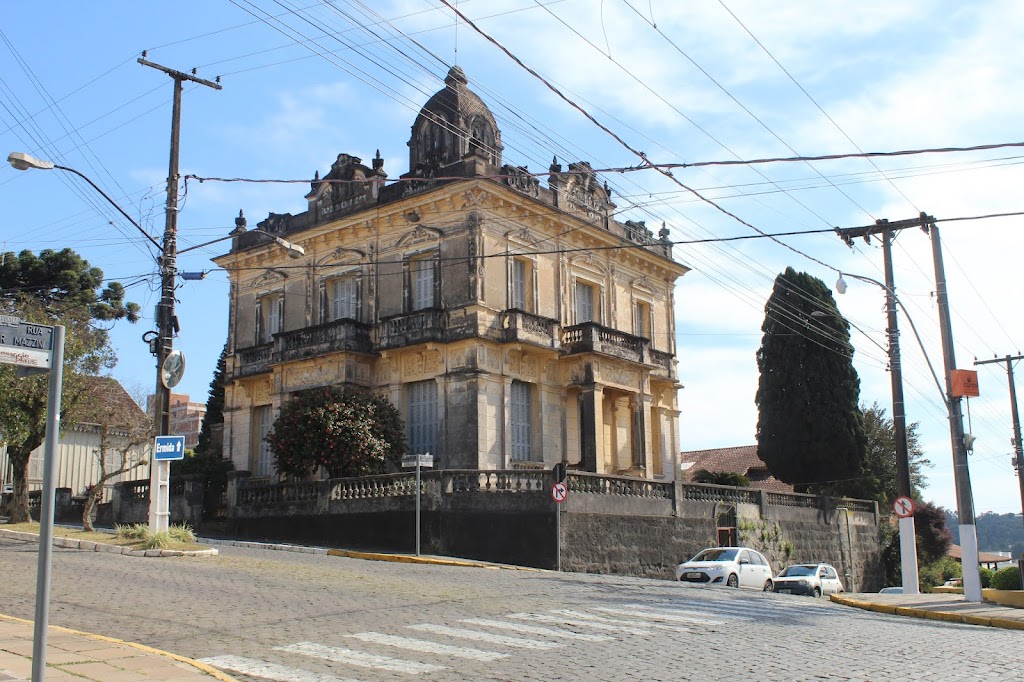 Em seguida retornamos pela mesma rua onde, na esquina com a rua Heitor Mazzini, está localizada a Mansão Mazzini, construída em 1921 por Agostinho Mazzini com traços do renascentismo italiano. A única herdeira, Adenina Mazzini, deixou em testamento que a propriedade deveria permanecer na família por seis gerações, sendo utilizada apenas como moradia ou museu. A mansão permanece fechada e ainda abriga em seu interior o mobiliário da época de sua construção.