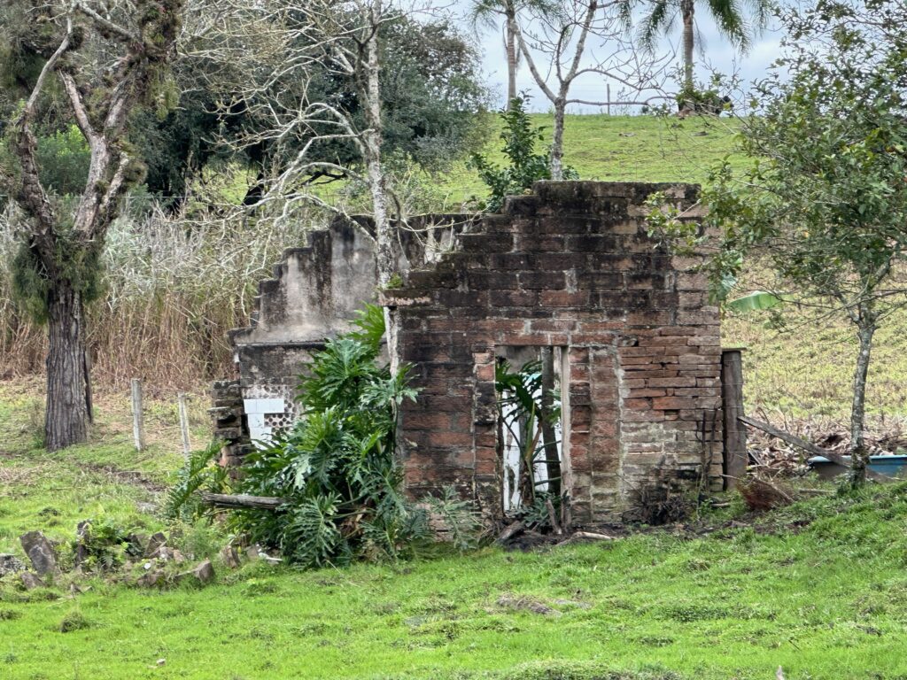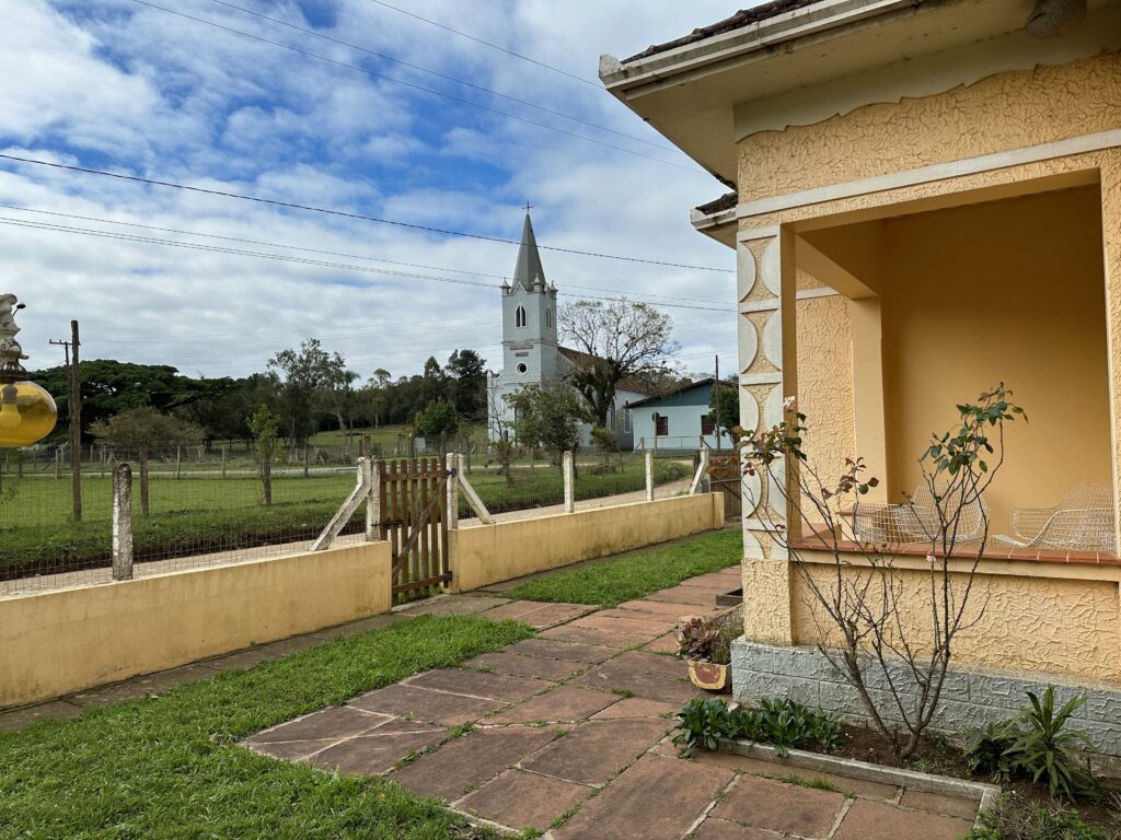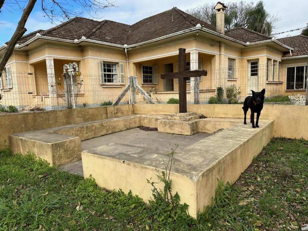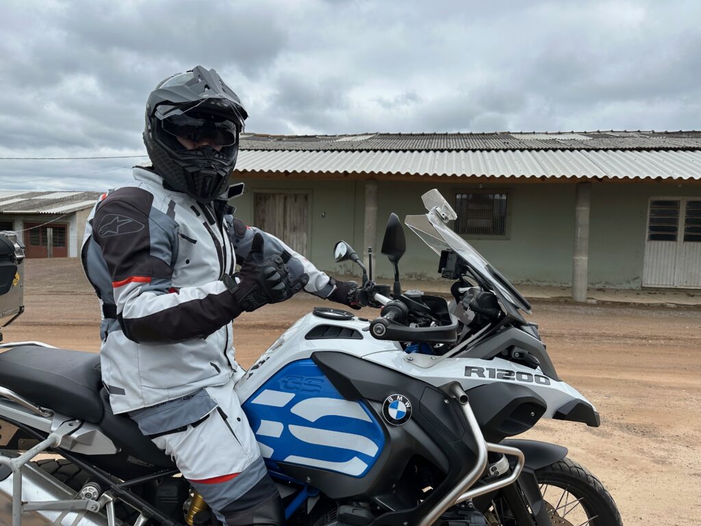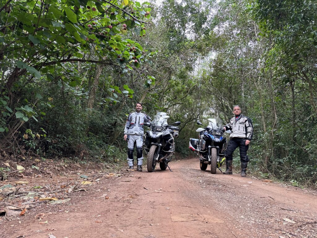 Saímos de Porto Alegre pela BR 290 às 10h15min da manhã com destino à zona rural entre os municípios de Glorinha e Taquara. Após percorremos 20 km por esta rodovia, chegamos ao viaduto de acesso à cidade de Gravataí onde, após cruzarmos sob a BR 290, poucos metros à frente entramos na rodovia RS 030, seguindo por mais 24 km em direção à cidade de Glorinha até a avenida João Osvaldo da Rosa, à esquerda da rodovia. No caminho, já no município de Glorinha, paramos para um lanche no restaurante e padaria Silva, um local bastante agradável e com uma grande variedade de produtos. Entramos na avenida João Osvaldo da Rosa e seguimos por cerca de 450 metros até o entroncamento da estrada Passo do Portão, caminho da esquerda, por onde seguimos 10Km até outro entroncamento, entrando na estrada do Maracanã, à esquerda da via, poucos metros após passarmos pelo cemitério do Maracanã. Continuamos pela estrada do Maracanã por mais 12 km até chegarmos à igreja Santa Cruz do Pinhal. Logo à frente da igreja, no lado oposto da estrada, percebemos uma casa bastante grande e antiga que inicialmente pensamos se tratar da residência do padre. Paramos em frente à casa para tirarmos algumas fotos quando, naquele momento, surgiu o morador que veio conversar conosco. Percebendo que não se tratava do padre, imaginamos se tratar de um morador da zona rural com apreço por motos e aventuras, o que algumas vezes ocorre quando andamos por regiões como esta. Qual nossa surpresa quando descobrimos que se tratava do Alexandre Möeller, um grande empresário do ramo de motociclismo já sendo proprietário de concessionárias como Yamaha, Ducatti, BMW e KTM, além de piloto extremamente experiente e competidor de provas famosas como o Rally Dakar e o Rally dos Sertões, além de outras tantas. Após alguns minutos de conversas identificamos diversos amigos em comum do meio do motociclismo. Continuamos nossa conversa em sua casa junto a um café recém feito pela Simone, sua esposa, que foi quem percebeu que nossas motos haviam parado em frente à casa e identificando se tratar de duas BMW ao ouvir o ronco dos motores. A casa é uma propriedade familiar desde o avô do nosso anfitrião, estando na família há várias gerações. Junto ao muro da frente existe um quadrado de concreto com uma cruz de madeira onde estão sepultados diversos soldados que ali lutaram um uma batalha durante a revolução Farroupilha. Foram momentos de uma conversa muito agradável com um cara sensacional, com grande conhecimento do mundo das motos e extremamente simples, hoje exercendo sua atividade profissional como empresário do ramo de motociclismo em São Paulo.